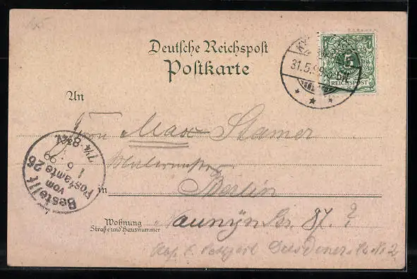gelaufen 1899, Eckknick oben li., guter Zustand