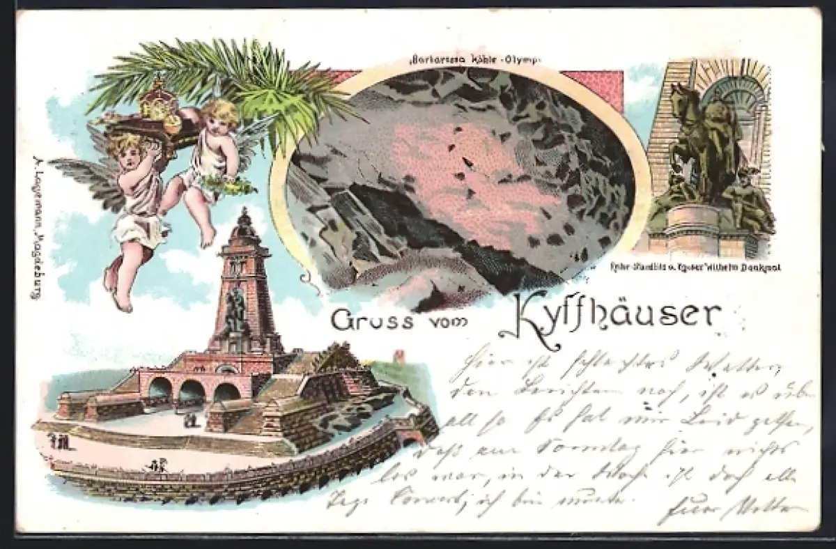 Lithographie Kyffhäuser, Kyffhäuser-Denkmal, Barbarossa Höhle, Kaiser Wilhelm Denkmal
