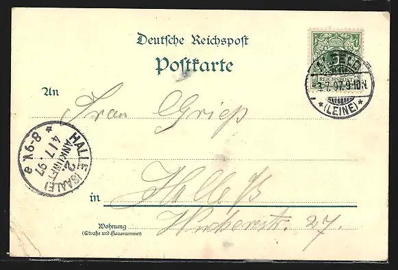 gelaufen 1897, Eckknick unten re., guter Zustand
