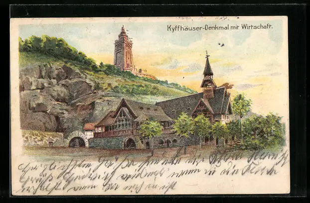 Lithographie Kyffhäuser, Kyffhäuser-Denkmal mit Gasthaus
