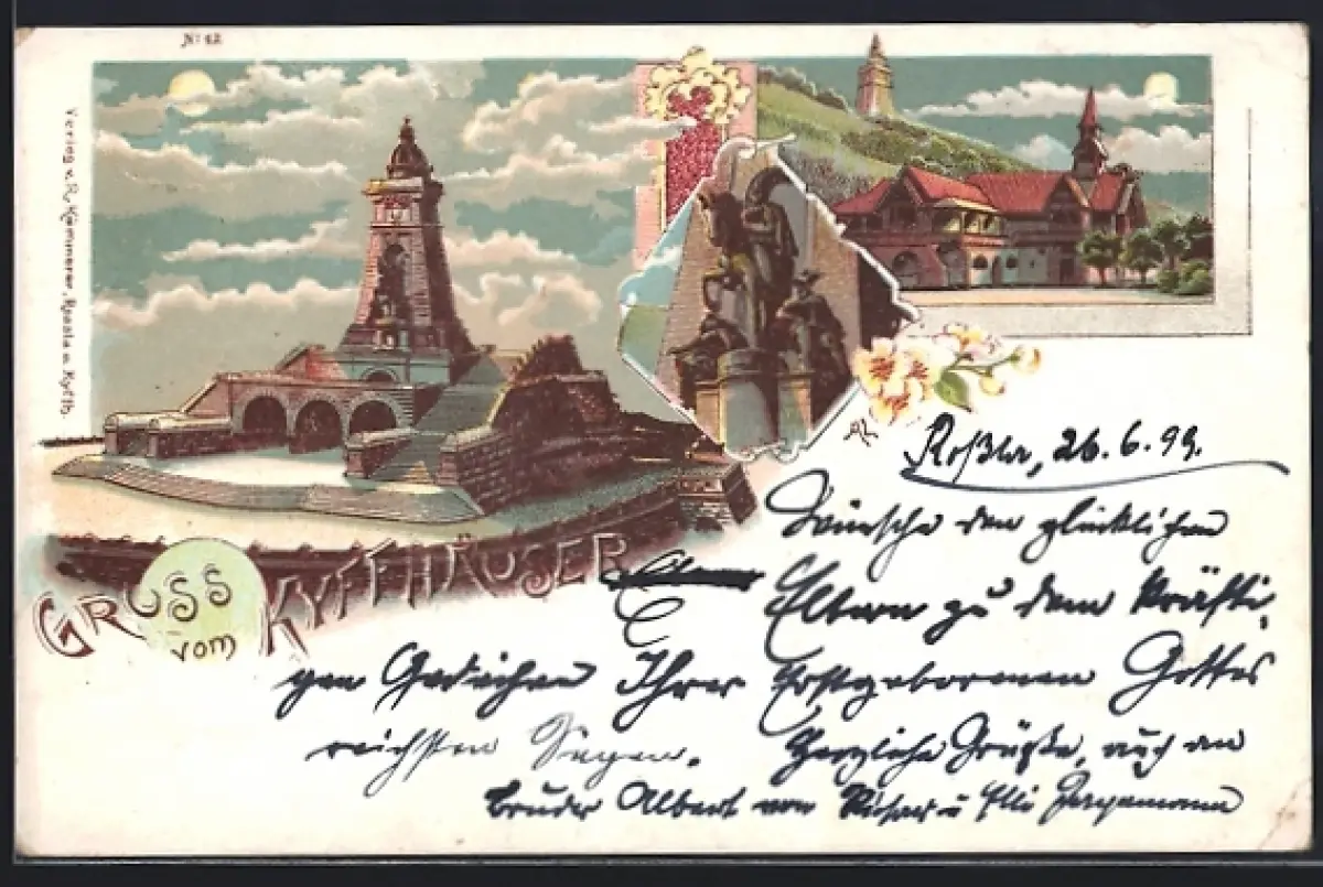 Lithographie Kyffhäuser, Kyffhäuserdenkmal, Burg, Kaiser-Wilhelm-Denkmal