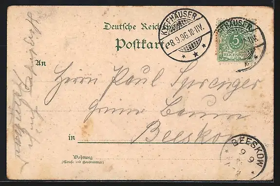 gelaufen 1906, Eckknick u. Einriss unten li., guter Zustand