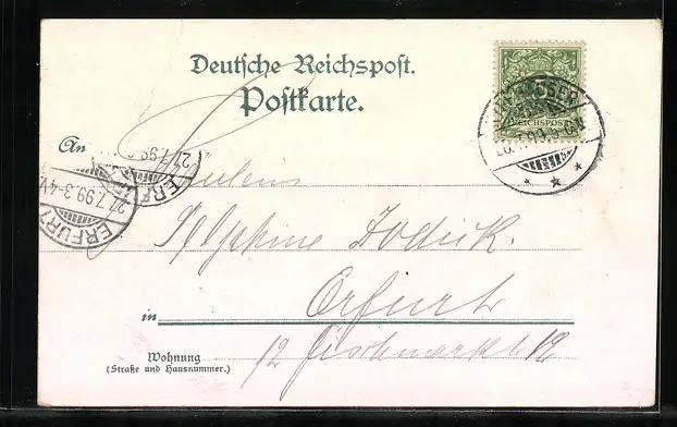 gelaufen 1899, Bugspur oben rechts, guter Zustand