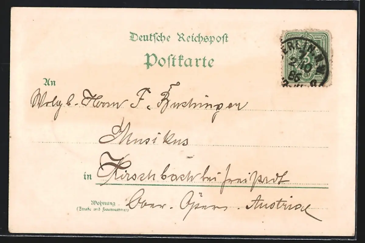 Personenbezogene Daten auf der Rückseite der Karte wurden durch blauen Textmarker unkenntlich gemacht. Die blauen Stellen sind auf die Vorderseite durchgeweicht und wirken sich negativ auf das Postkartenfoto aus