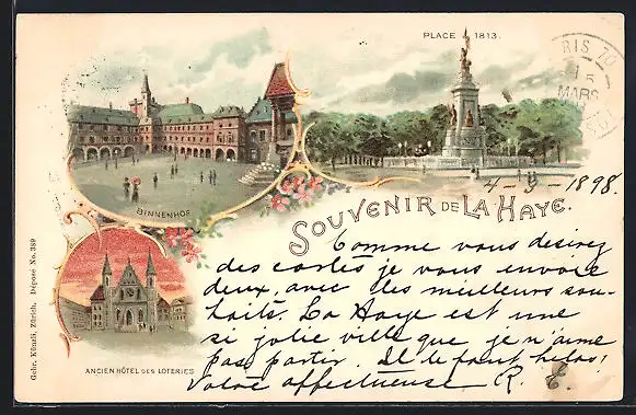 Lithographie La Haye, Place 1813, Ancien Hotel des Loteries, Binnenhof