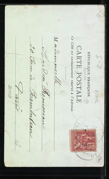 gelaufen 1902, Einriss re. oben, Eckknicke li., Bugspur re. oben horizontal