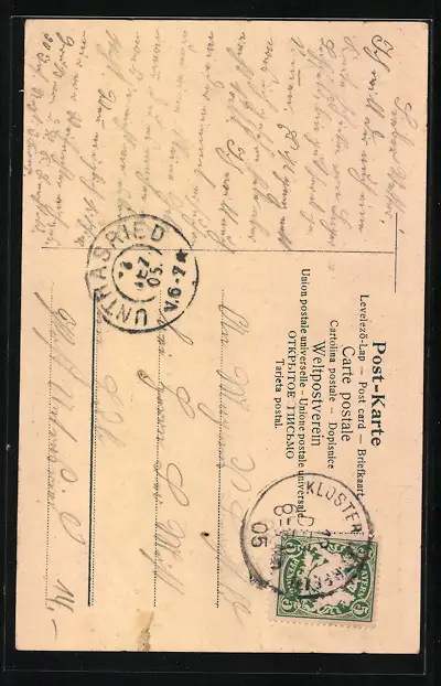 gelaufen 1905, geklebter Einriss unten Mitte, guter Zustand