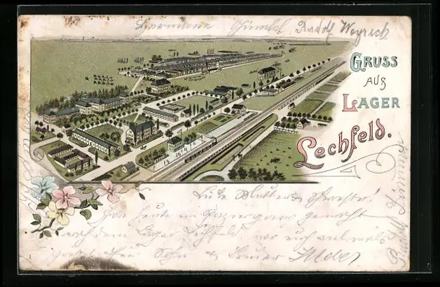 Lithographie Lager Lechfeld, Totalansicht des Truppenübungsplatzes