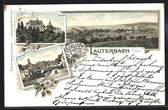 Lithographie Lauterbach, Teilansicht, Strassenpartie, Ortspartie