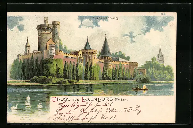 Lithographie Laxenburg, Blick auf die Franzensburg