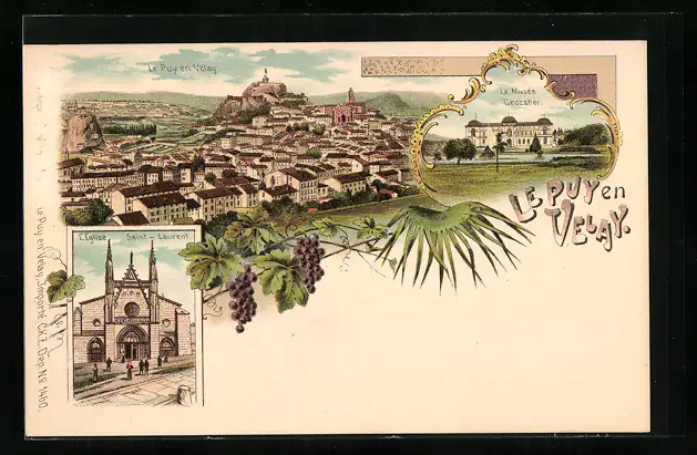 Lithographie Le Puy en Velay, L`Église Saint-Laurent, Musée Crozatier