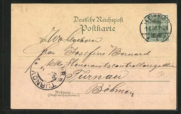 gelaufen 1900, Eckknick oben li., Stempelspur, guter Zustand