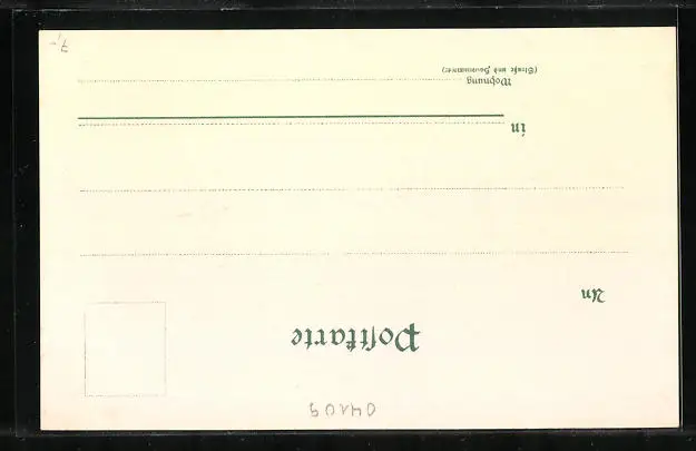 Personenbezogene Daten auf der Rückseite der Karte wurden durch blauen Textmarker unkenntlich gemacht. Die blauen Stellen sind auf die Vorderseite durchgeweicht und wirken sich negativ auf das Postkartenfoto aus