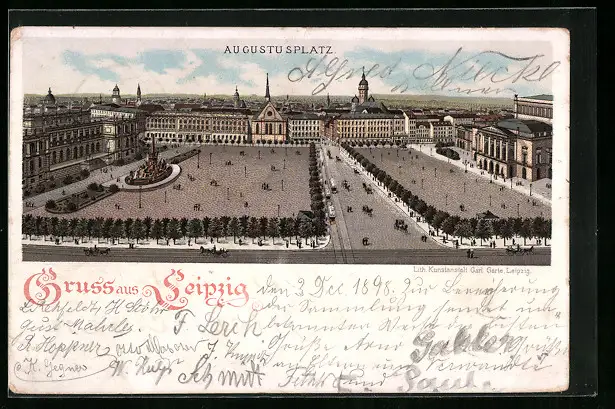 Lithographie Leipzig, Augustusplatz aus der Vogelschau