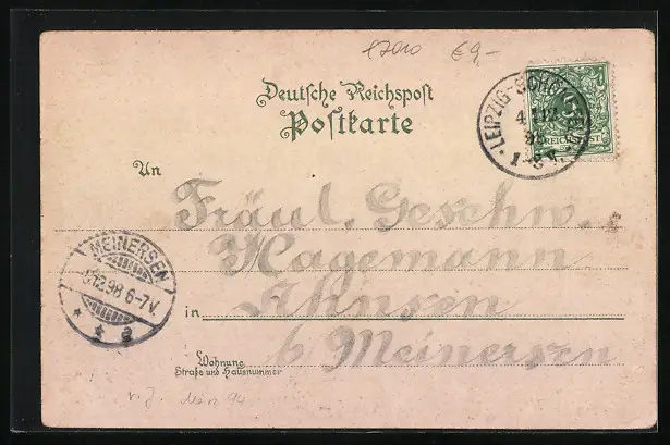 gelaufen 1898, Eckknick re. unten, Bugspur oben mittig, Einriss li. unten, guter Zustand