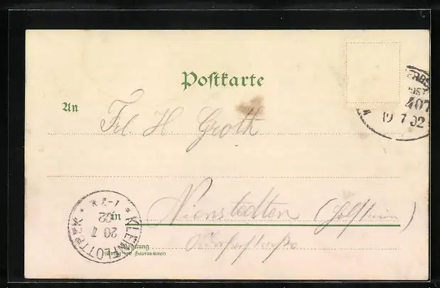 gelaufen 1902, Briefmarke entfernt, Stempelspur, guter Zustand