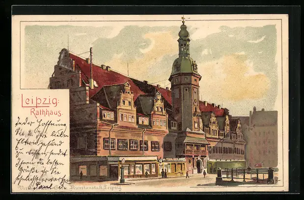 Lithographie Leipzig, Blick auf das Rathaus
