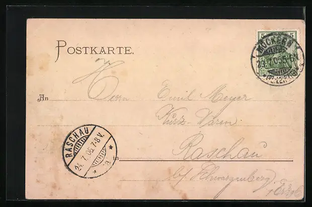 gelaufen 1905, Ecken bestoßen, Eckknick oben re., guter Zustand