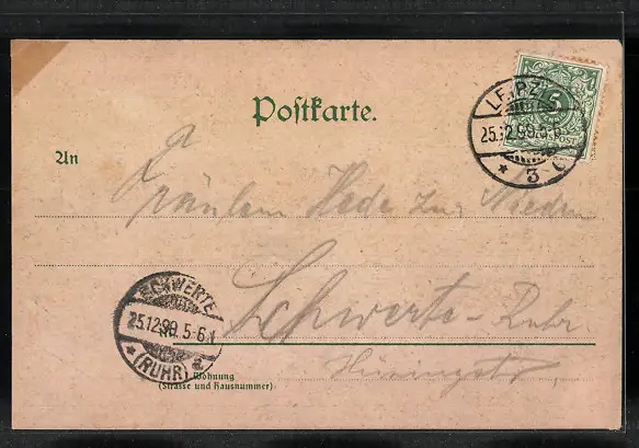 gelaufen 1899, Eckknick re. oben, rückseitig Klebe- und Papierreste, minimale Einrisse li. oben, guter Zustand