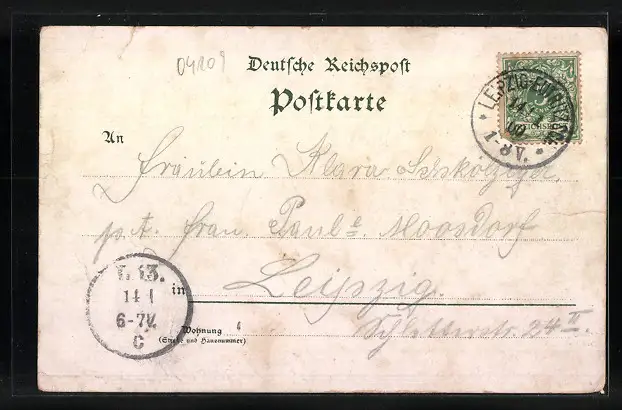 gelaufen 1900, Einrisse oben rechts und links mittig, guter Zustand