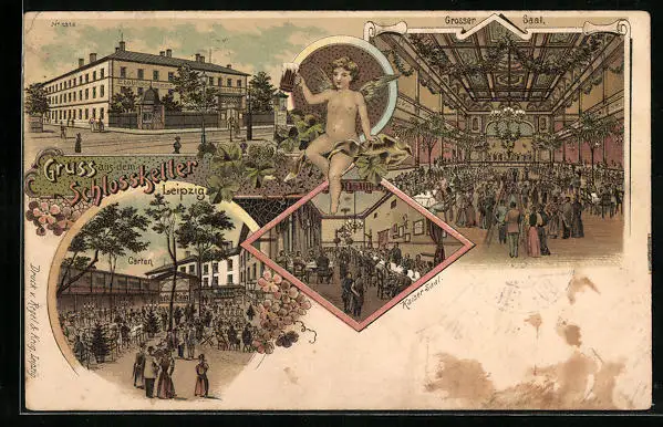 Lithographie Leipzig, Gasthaus Schlosskeller, Innenansicht