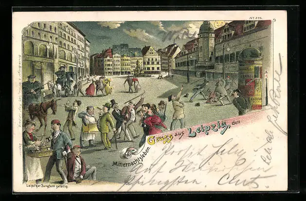 Lithographie Leipzig, Mitternachtsleben in den Strassen
