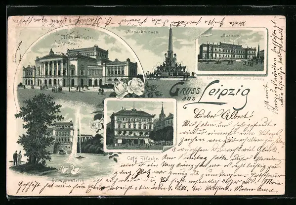Lithographie Leipzig, Neues Theater, Cafe Felsche, Museum