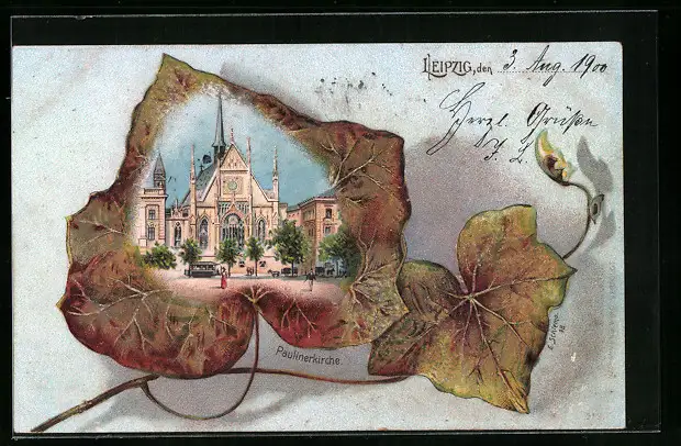 Lithographie Leipzig, Paulinerkirche, Efeublatt