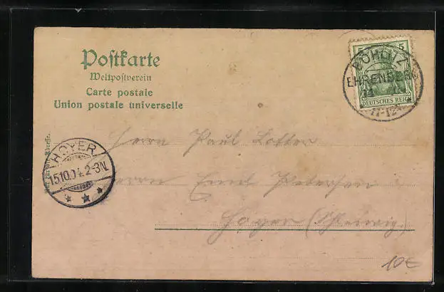 gelaufen 1904, Eckknick unten re., guter Zustand
