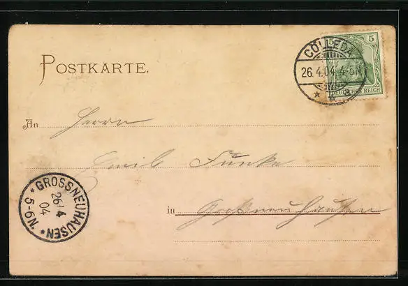 gelaufen 1904, Eckknicke oben, guter Zustand