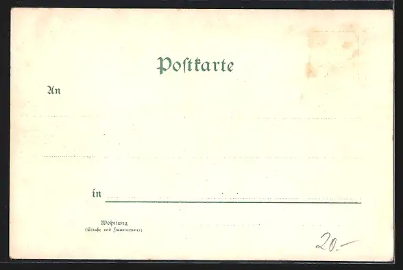 Personenbezogene Daten auf der Rückseite der Karte wurden durch blauen Textmarker unkenntlich gemacht. Die blauen Stellen sind auf die Vorderseite durchgeweicht und wirken sich negativ auf das Postkartenfoto aus