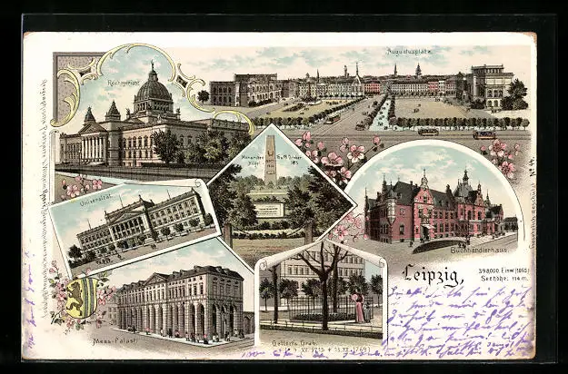 Lithographie Leipzig, Universität, Buchhändlerhaus, Augustusplatz