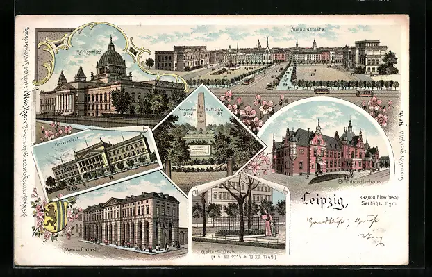 Lithographie Leipzig, Universität, Buchhändlerhaus, Augustusplatz