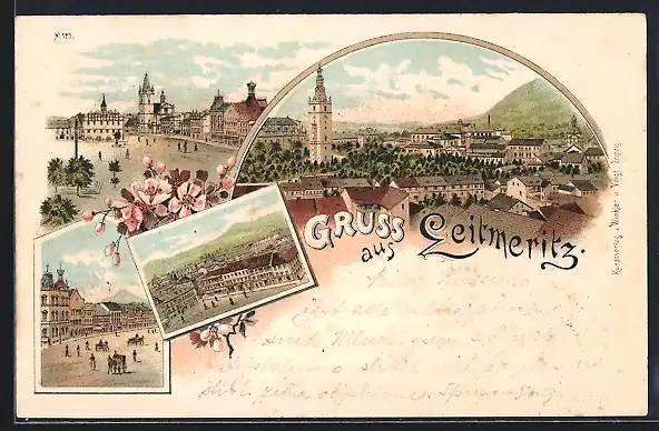Lithographie Leitmeritz / Litomerice, Gesamtansicht, Marktplatz