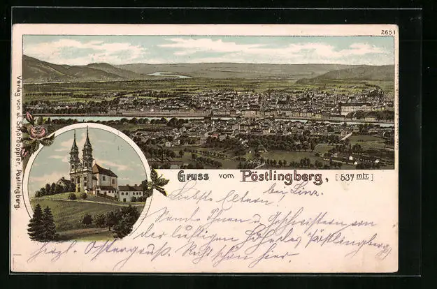 Lithographie Linz, Pöstlingberg, Totalansicht