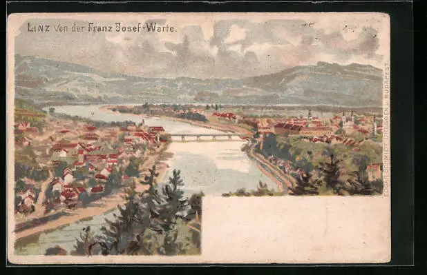 Lithographie Linz a. D., Panoramablick von der Franz Josef-Warte