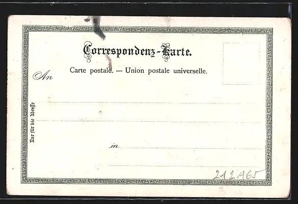 Personenbezogene Daten auf der Rückseite der Karte wurden durch blauen Textmarker unkenntlich gemacht. Die blauen Stellen sind auf die Vorderseite durchgeweicht und wirken sich negativ auf das Postkartenfoto aus