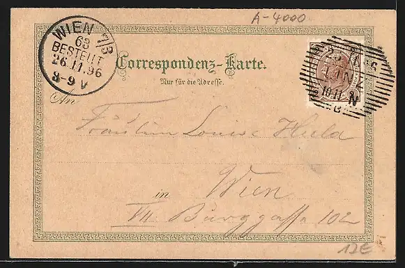 gelaufen 1896, Eckknick re. oben, guter Zustand