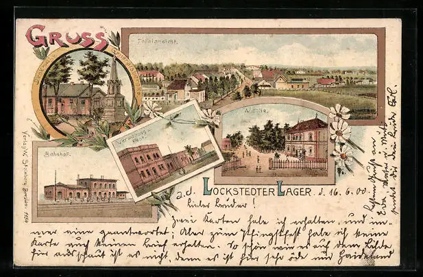 Lithographie Lockstedter Lager, Totalansicht, Bahnhof, Wache