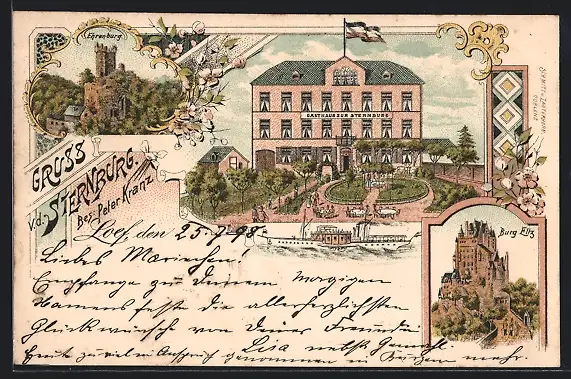Lithographie Löf, Gasthof Sternburg, Burg Eltz