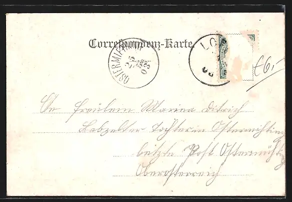 gelaufen 1903, Briefmarke entfernt, rückseitig Oberflächenschaden, guter Zustand