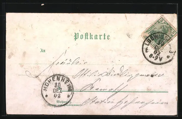 gelaufen 1902, Eckknick u. Bugspur oben li., guter Zustand