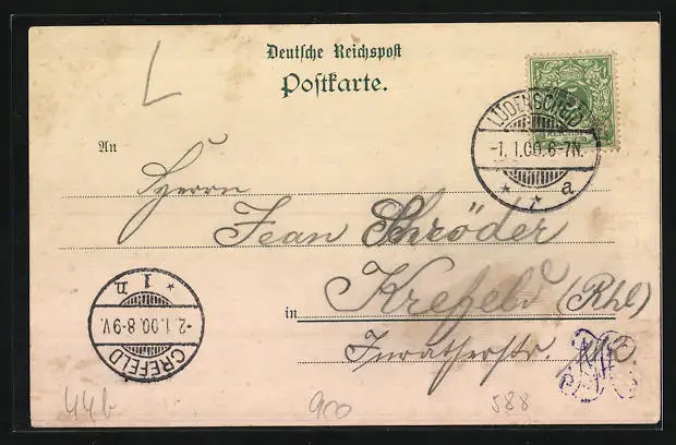 gelaufen 1900, Eckknick unten rechts, guter Zustand