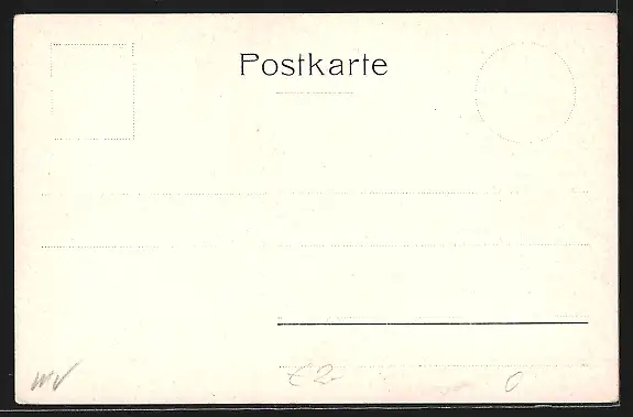 Personenbezogene Daten auf der Rückseite der Karte wurden durch blauen Textmarker unkenntlich gemacht. Die blauen Stellen sind auf die Vorderseite durchgeweicht und wirken sich negativ auf das Postkartenfoto aus