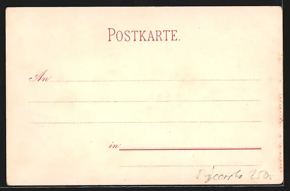 Personenbezogene Daten auf der Rückseite der Karte wurden durch blauen Textmarker unkenntlich gemacht. Die blauen Stellen sind auf die Vorderseite durchgeweicht und wirken sich negativ auf das Postkartenfoto aus