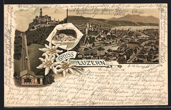 Lithographie Luzern, Totalansicht, Gütsch