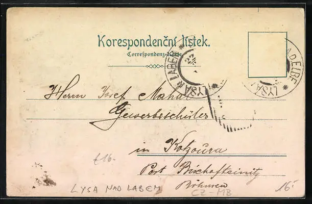 Lithographie Lysá nad Labem, Námestí, C. k. poste, Cukrovar