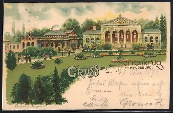 Lithographie Magdeburg, Gasthof Herrenkrug