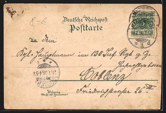 gelaufen 1896, Bugspur li. unten, linke Kante beschnitten