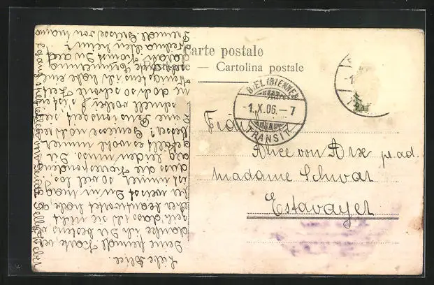 gelaufen 1906, Briefmarke entfernt, guter Zustand
